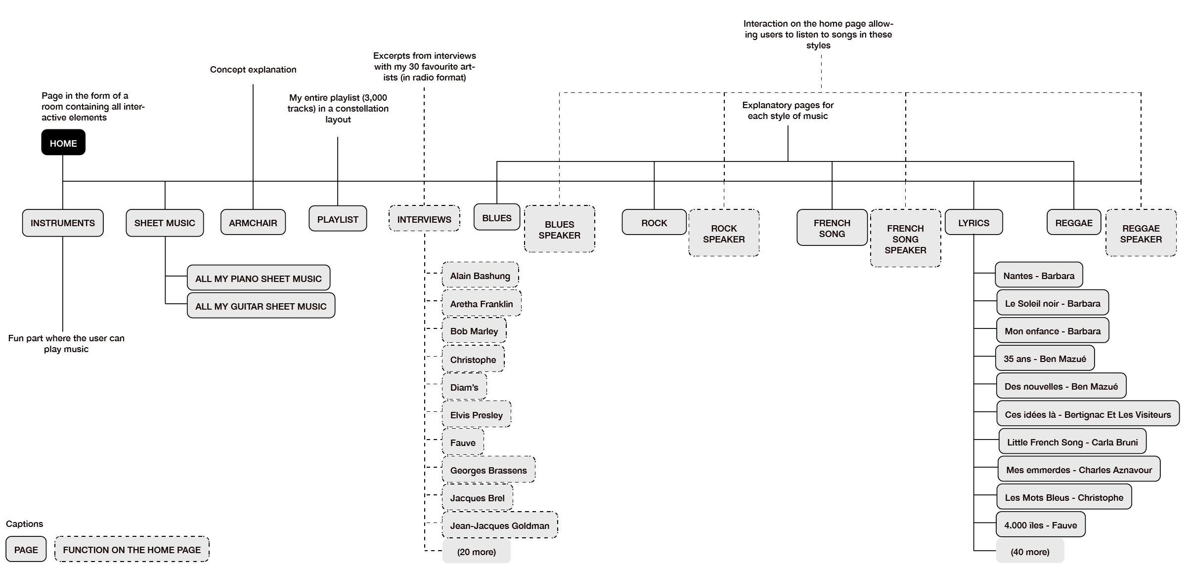 The Acoustiquerie project is the result of a personal and immersive approach to my musical universe. Exploring instruments, styles and eras through an interactive website allows users to discover a side of myself. This work earned me a diploma from the School of Applied Arts in La Chaux-de-Fonds.