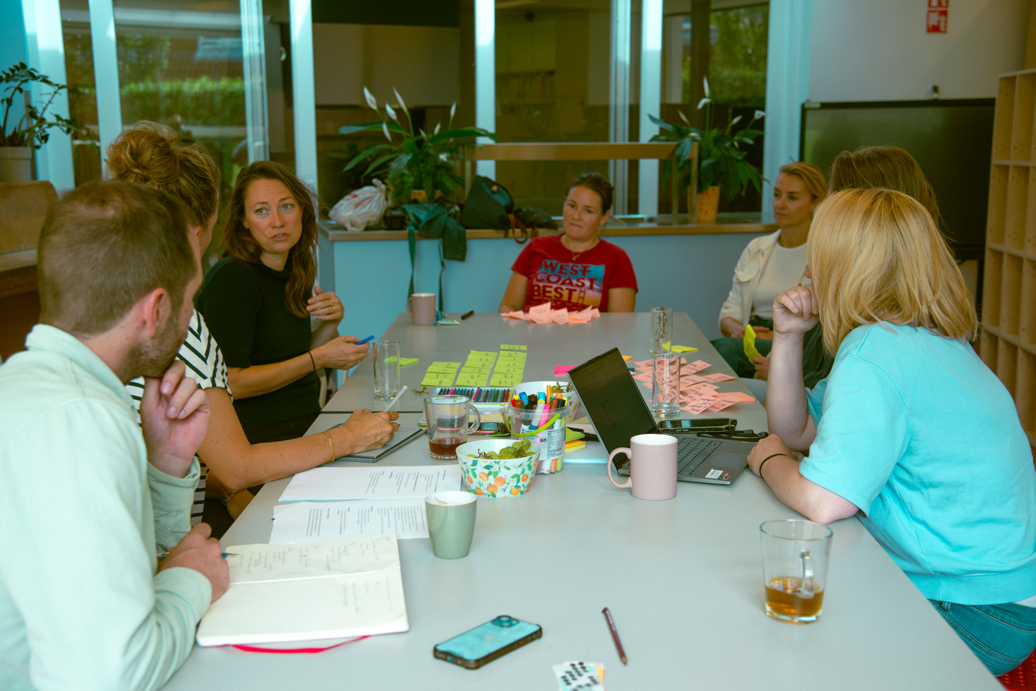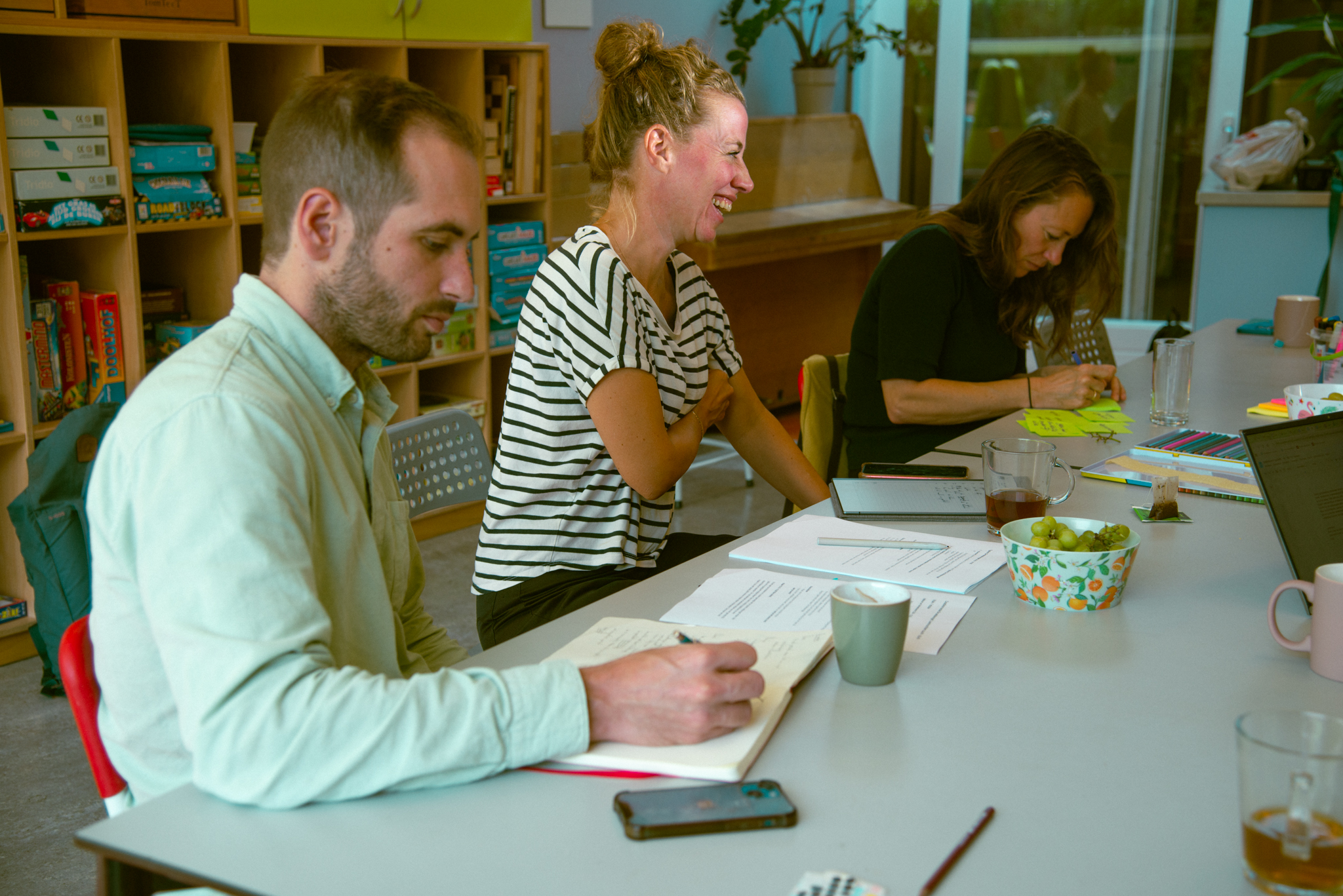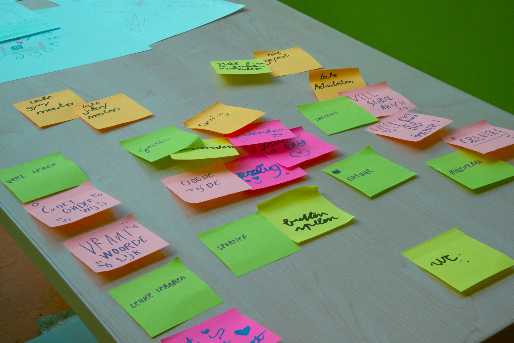 Vendredi, c’était une journée spéciale, car avec Susanne et Michiel, nous sommes allés dans une école pour commencer un nouveau projet : le mandat est de créer une nouvelle identité visuelle pour l’établissement. Ce que nous avons fait, c’était d’abord un rendez-vous avec quelques enfants qui ont répondu à des questions comme : « Qu’est-ce que cette école représente pour vous ? Qu’est-ce qui vous plaît le plus ? » C’était comme un brainstorming, ils ont aussi fait des dessins. Puis, la même chose avec des mamans, et ensuite avec des professeurs. J’ai assisté à ces trois heures de discussion en néerlandais, c’était un petit peu long. J’ai dû prendre des photos de l’ambiance ou des mots écrits sur des post-it. C’était intéressant de voir comment ça se passe.